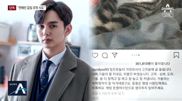 지난해 9월 유튜브 갑수목장의 운영자 A씨로부터 영화배우 유승호가 ‘고미’와 ‘도리’라는 이름의 고양이를 입양했다.