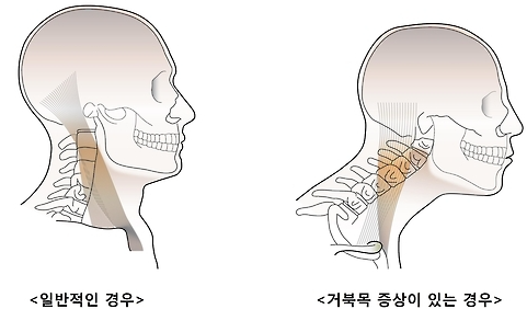 목 척추가 원래는 전방을 향해 C자형으로 나와있어야 함에도 불구하고 \(역슬래시) 형태로 쭉 펴진 채 앞쪽으로 기울어진 상태이며, 통증의학과, 재활의학과, 신경외과 등에서 담당한다.