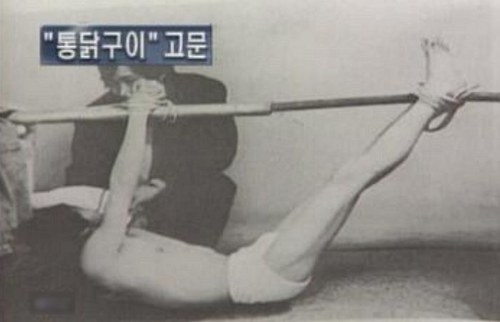 이를 통닭구이오븐 안에서 통닭이 빙빙 돌아가듯, 사람을 묶어 놓고 발로 차 빙빙 돌렸다고 해 ‘통닭구이’라고 고문 방식을 명명했다고 전해진다.