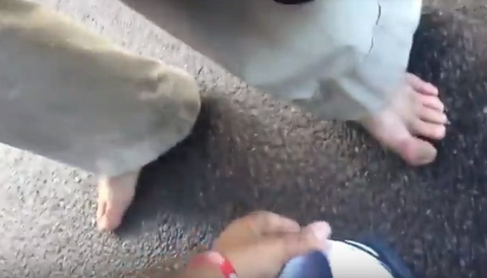 노숙자는 이에 “신고 있던 신발이 너무 낡아서 떨어졌다. 어차피 발에도 물집이 나서 신발은 못 신는다”고 답했다.