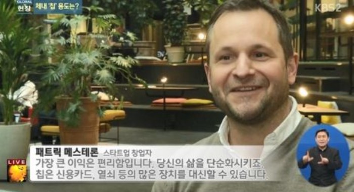 손바닥 아래 쌀알정도 크기의 칩을 이식하기 위해 주사기가 들어오는 순간의 짧은 고통을 참으면 이용이 가능하다.