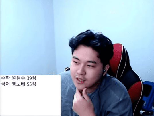 그는 올해 치뤄진 수능을 보고, 지난 22일 ‘여러분들 수능 잘 보셨나요? 가채점 공개’라는 제목으로 생방송을 했다.