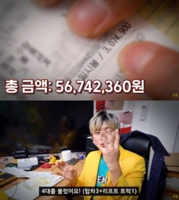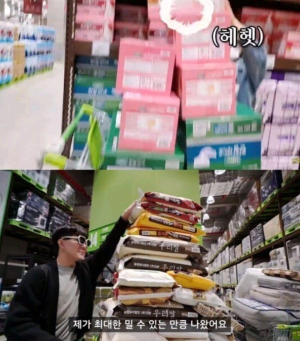 엄청난 물건을 사기 위해 허팝은 매장에서 카트를 총 65개를 썼으며 이를 옮기기 위해 탑차를 3대나 불렀다고 전했다.