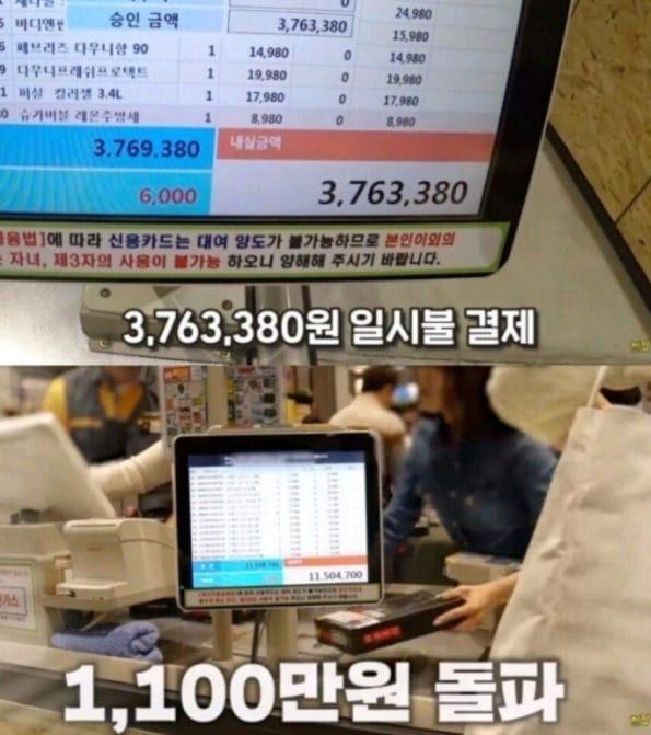 이어 허팝은 세탁기와 건조기까지 구매했으며, 계산대에서 몇 백만원이 넘는 금액을 결제하였다.