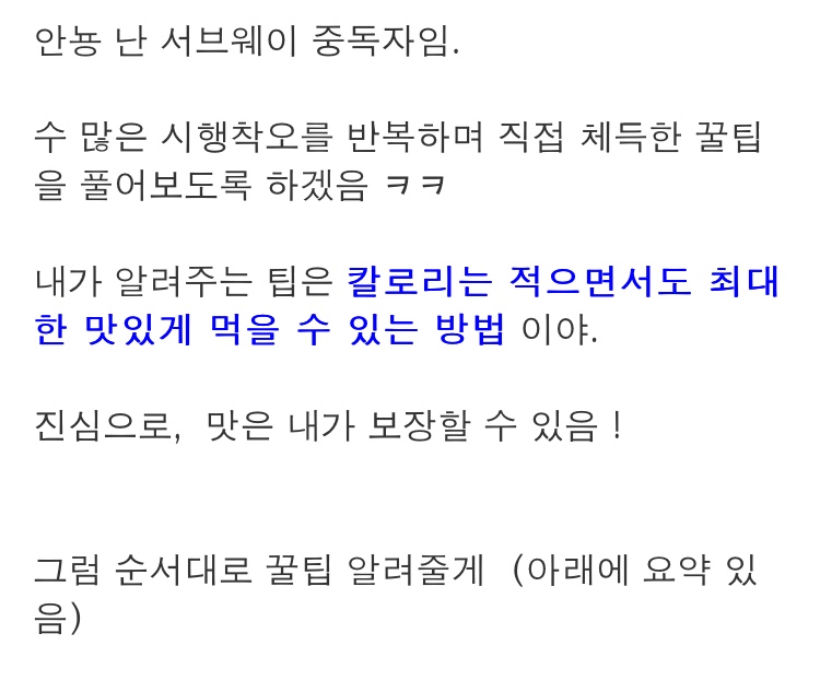 써브웨이를 좋아하지만 다이어트 때문에 걸림이 된다면 이 게시물을 꼭 참고하도록 하자.