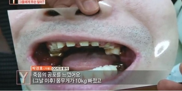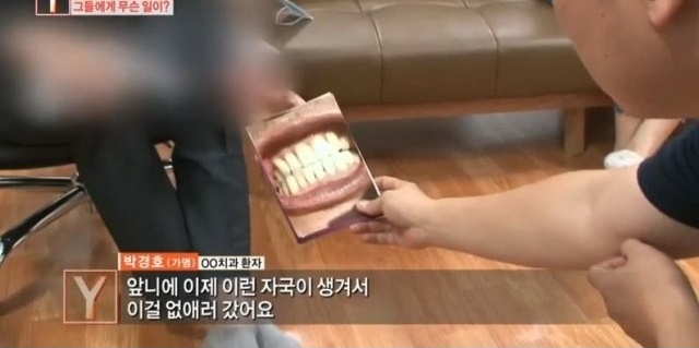 그는 치아에 생긴 얼룩만 지우고 싶었는데 치과의 원장은 윗니에 충치가 조금씩 있다며 잇몸마취 상태로 윗니 10개를 마음대로 갈아버렸다고 한다.