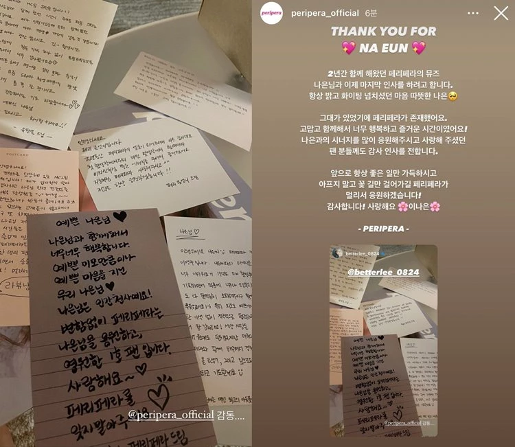 이후 나은의 대한 논란까지 터지면서 페리페라 계정은 SNS 상에 남아있던 나은의 모델 사진까지 모두 다 비공개 처리했다.