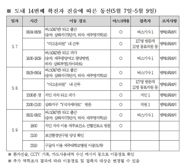 제주특별자치도에 따르면 14번째 확진자인 30대 여성 A씨는 지난 9일 오후 9시경 코로나 19 확진 판정을 받았다고 한다.