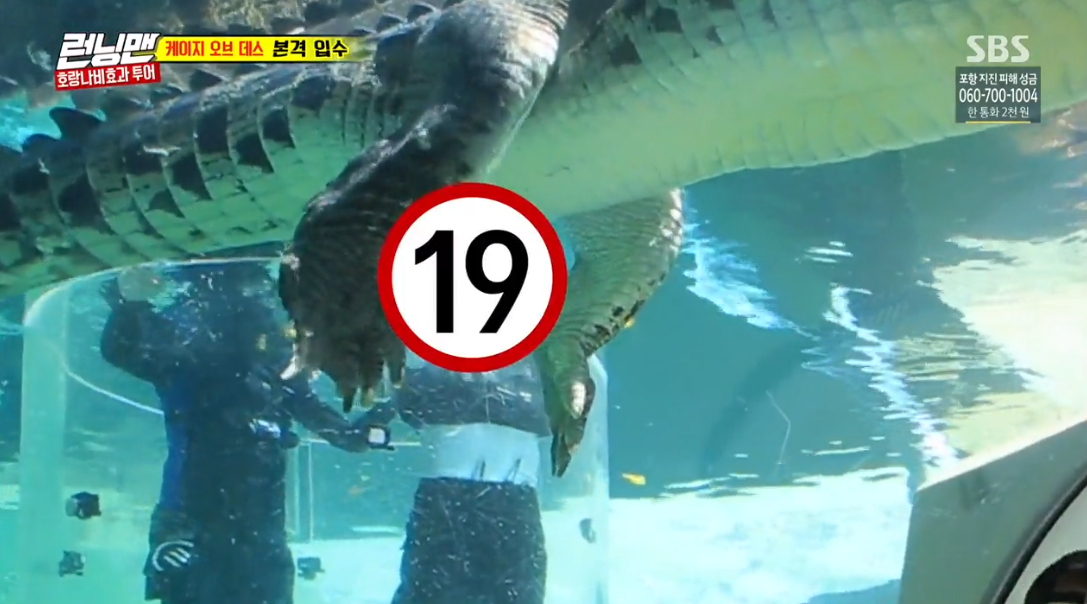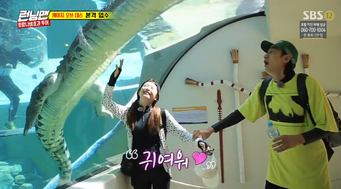 수조 밖에서 이를 지켜보던 다음 타자 이광수도 공포에 질렸지만, 벌칙 면제자인 전소민은 “귀여워”라며 신이 난 듯 악어를 구경했다.