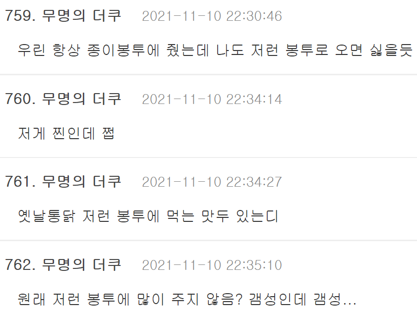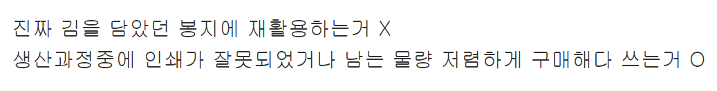 이를 본 온라인 커뮤니티 네티즌들은 “저 봉투는 옛날에 통닭 사면 많이 보던 봉투네요.”, “진짜 김을 담았던 봉투에 통닭을 넣은 것이 아닌, 생산과정 중에 인쇄가 잘못된 봉투를 저렴하게 구매해서 쓰는 겁니다.”라는 반응을 보였다.