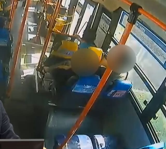 영상을 보면 버스에 앉아있던 한 여성이 버스가 우회전을 하자 바닥으로 그대로 떨어졌다.