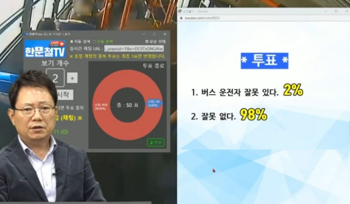 또 버스 기사 잘못에 대한 투표를 진행한 결과 ‘잘못 없다’가 98%로 압도적으로 많이 나왔다.