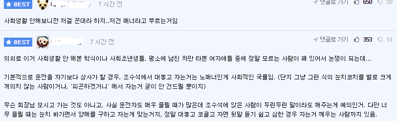 이를 본 온라인 커뮤니티 네티즌들은 “사회생활을 안해봤으니까 저걸 꼰대라고 하는 겁니다 저건 매너라고 부르는겁니다.”라는 반응을 보였다.