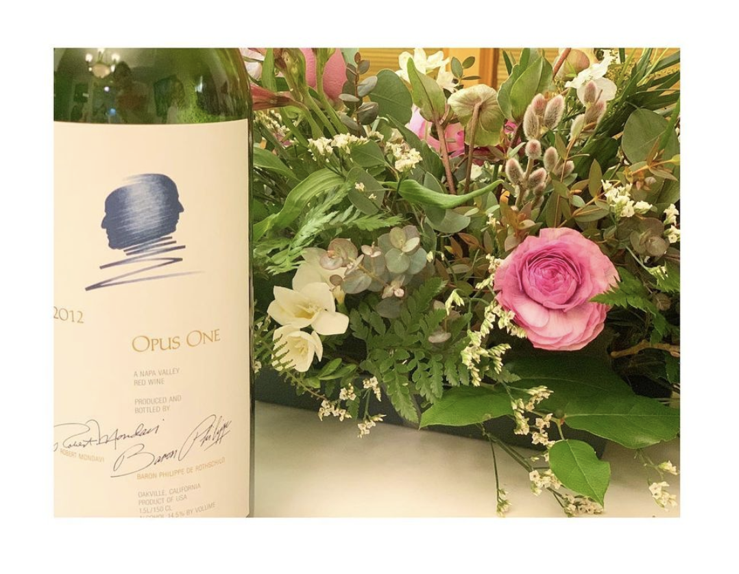 해당 사진 속에는 꽃 여러 송이와 와인병 하나가 담겨져 있었다.