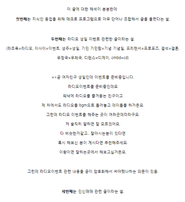 가장 충격적인 해석은 인육 거래에 대한 글이 가장 신빙성있었다.