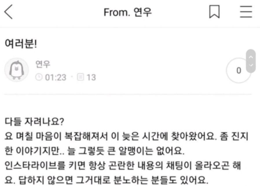 이를 본 네티즌들은 “이게 진짜 소외당하는거 아님?”, “연우 진짜 안타깝다 제일 이쁘고 좋아했는데”등의 반응을 보였다.