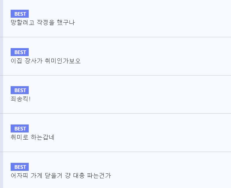 또 “다코야끼에 가쓰오부시가 없으면 안 팔아야 하는 게 아닌지 먹다가 밀가루 맛 밖에 안 나서 짜증 났습니다.”라고 묻자 “ㅈㅅㅋㅋ”라고 짧은 답변만을 남겨 태도 논란이 불거지고 있다.