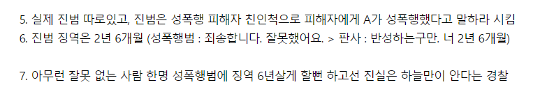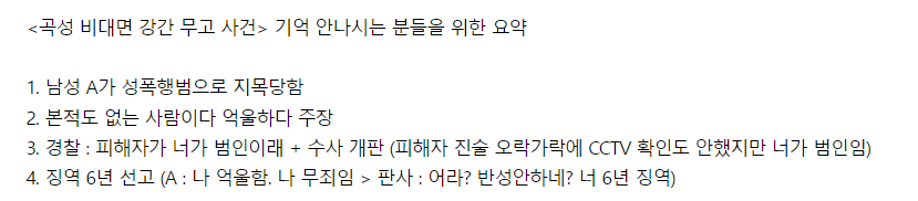 경찰이 피해 장소로 꼽힌 모텔 CCTV도 확보하지 않고 전화로만 조사했는데 유죄가 인정됐다고 한다.