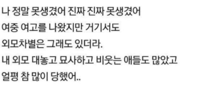 여성들이 극공감하고 있다는 못생긴 여자가 못생긴 남자보다 불행한 이유 여성들이 극공감하고 있다는 못생긴 여자가 못생긴 남자보다 불행한 이유 ADVERTISEMENT ADVERTISEMENT ADVERTISEMENT ADVERTISEMENT ADVERTISEMENT ADVERTISEMENT [저작권자 NEWSNACK/ 무단복사, 무단전재 및 재배포 금지 (위반 시 법적조치)]