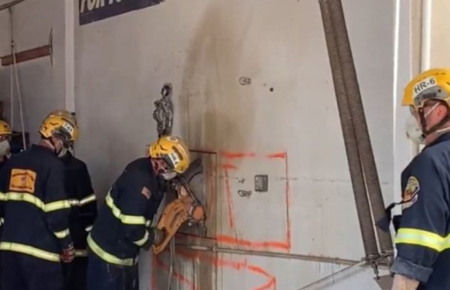 건물과 건물 사이의 틈이 너무 좁아 여성 스스로 빠져나오지도, 누군가 들어가 구조할 수도 없는 상황에서 구조대원들은 조심스럽게 벽의 일부를 잘라냈다.