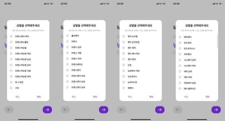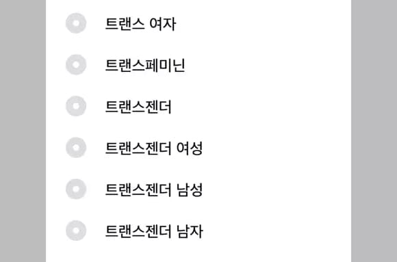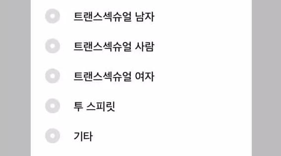 해당 화면에는 ‘투 스피릿’이라는 생소한 성별과 ‘트랜스젠더 남성’, ‘트랜스젠더 여성’ 등 잘 알려지지 않은 성별들이 적혀있었다.