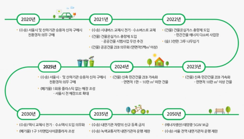 정부는 2030년 내연 기관차 판매 중단 이후에도 2035년 내연 기관차 등록을 금지하면서 서울시도 2035년 안에 내연 기관차 운행을 금지하겠다고 선언했다.