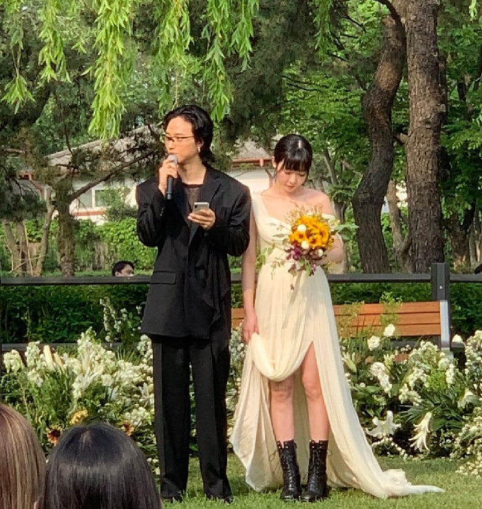 이날 가수 아이유와 멤버 오혁이 축가를 부른 것으로 전해졌다.