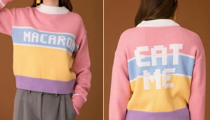 로리타 컨셉과 성적인 은유를 위해 기존의 니트를 거꾸로 입어 ‘Eat me’가 보이도록 설정했다는 말이다.