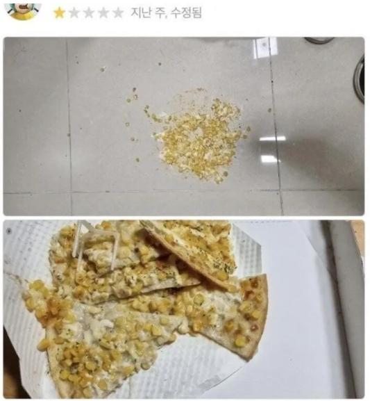 “제가 피자를 떨어뜨린 건 맞지만 순간 열이 받아서 별점 1점 드리겠습니다.”라며 당시 상황을 전했다.