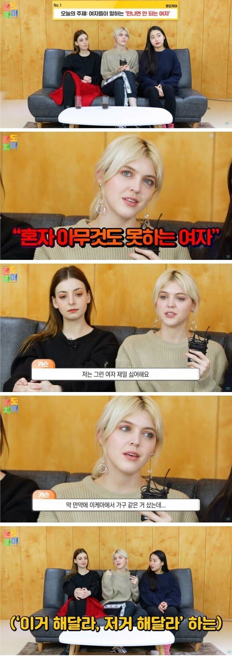 방송에 출연한 출연진은 “제가 싫어하는 여자가 있는데, 바로 혼자 아무것도 못하는 여자입니다.”라며 이야기를 시작했다.