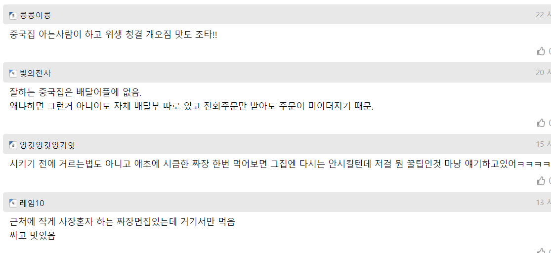 “그것은 오래된 짜장이거나, 전 날 음식을 사용하거나, 버려야 할 양파를 사용한 것입니다.”, “정리하자면 짜장면이 시큼한 중국집은 피하셔야 합니다.”라고 설명했다.