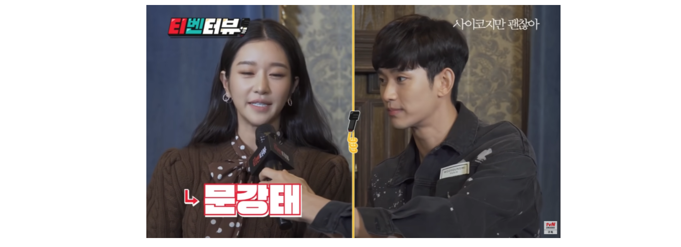 이어 인터뷰에서 서예지는 말 한 마디로 김수현을 설레게 했는데 “문영에게 강태는 어떤 존재”라는 질문에 서예지는 김수현을 옆으로 올려다보고 지그시 미소 지으며 “내 심장?”이라고 답했다.