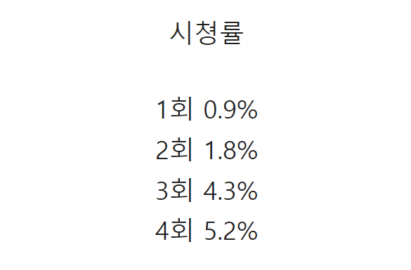 1회 0.9%, 2회 1.8%, 3회 4%에 이어 4회에선 5.2%를 기록했다. 넷플릭스 국내 TV 프로그램 시청 순위에서도 1위 자리를 이틀째 지키고 있다.
