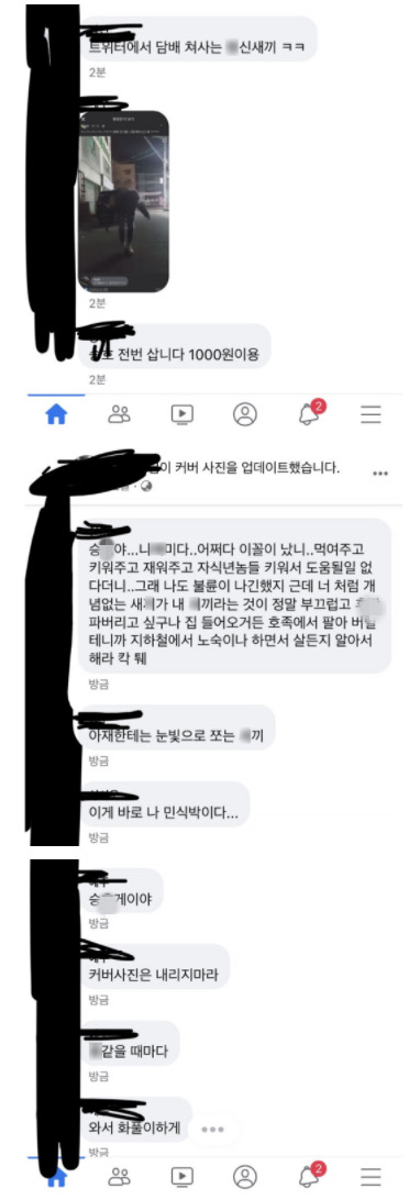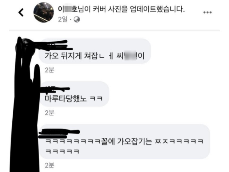 한 학생이 올린 사진에는 “아재한테는 눈빛으로는 쪼는 X끼”, “커버사진은 내리지마라”, “와서 화풀이하게”, “이 정도면 비활을 타야하지않냐?”등의 댓글이 달렸다.
