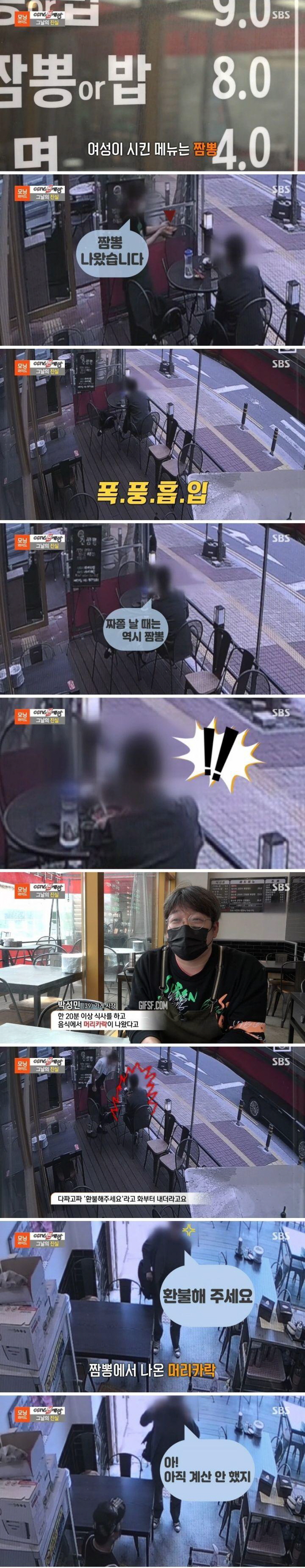 해당 여성은 주문한 짬뽕을 20분 이상 식사를 한 후 음식에서 머리카락이 나왔다며 A 씨에게 환불을 요구했다.