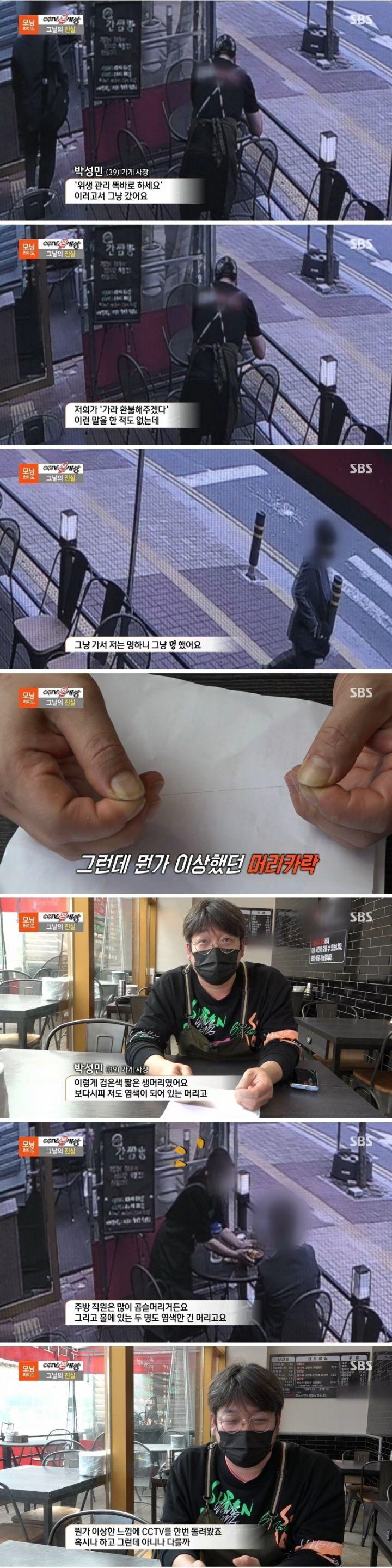 하지만 음식을 조리한 A 씨는 “검은색 짧은 생머리에서 나올 수 있는 머리카락이 나왔지만 저는 염색이 되어 있는 머리입니다.”라며 억울함을 토했다.