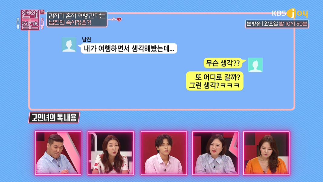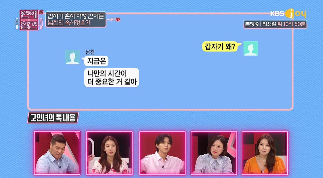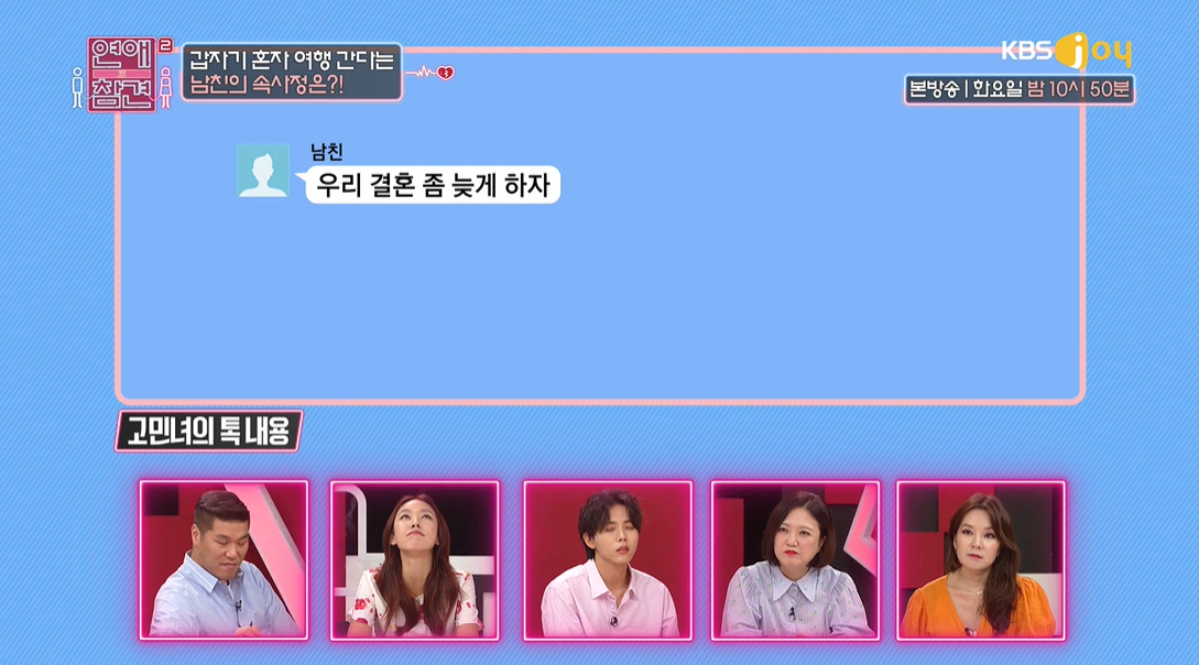 남자친구는 “내가 여행하면서 생각을 해봤는데”라며 “우리 결혼 좀 늦게 하자. 지금은 나만의 시간이 더 중요하다”고 말했다.
