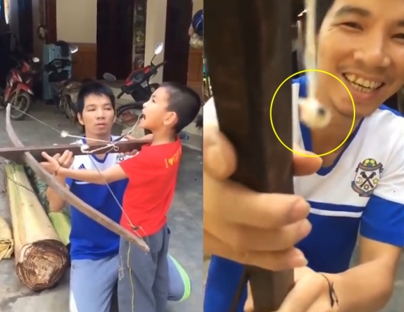 태국의 한 가정집에서 촬영됐다는 영상을 보면 아이 아버지가 활 방아쇠를 당기려고 준비 중이다.