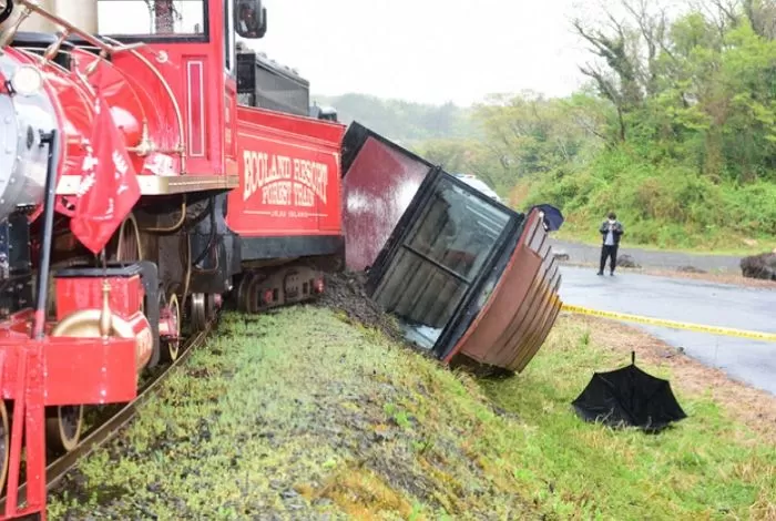 사고 기차에 탑승했던 60대 여성 관광객은 “기차가 내리막길 커브를 돌다가 갑자기 왼쪽으로 휙 넘어갔다”고 말했다.