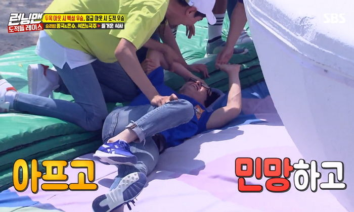 곧 ‘런닝맨’ 멤버들은 “얼마나 신났으면 점프를 여기까지 뛰었냐”며 유재석을 놀리기 시작했다.