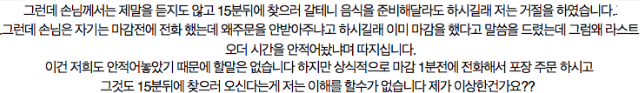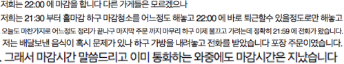 마감 1분전에 매장에 전화를 해서 주문을 하겠다는 손님
