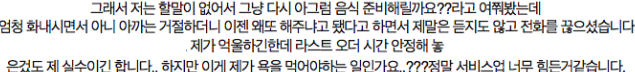 이에 A씨는 손님에게 “ 아그럼 다시 음식 준비 해드릴까요?”하니 손님은 “아까는 거절하더니 이젠 또 해준다고 하네.됐다”하면서 전화를 끊었다.