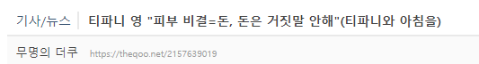 작성자 A씨는 “티파니 영 “피부 비결=돈,, 돈은 거짓말 안해”” 라는 제목의 글로 많은 이들의 많은 공감을 전했다.