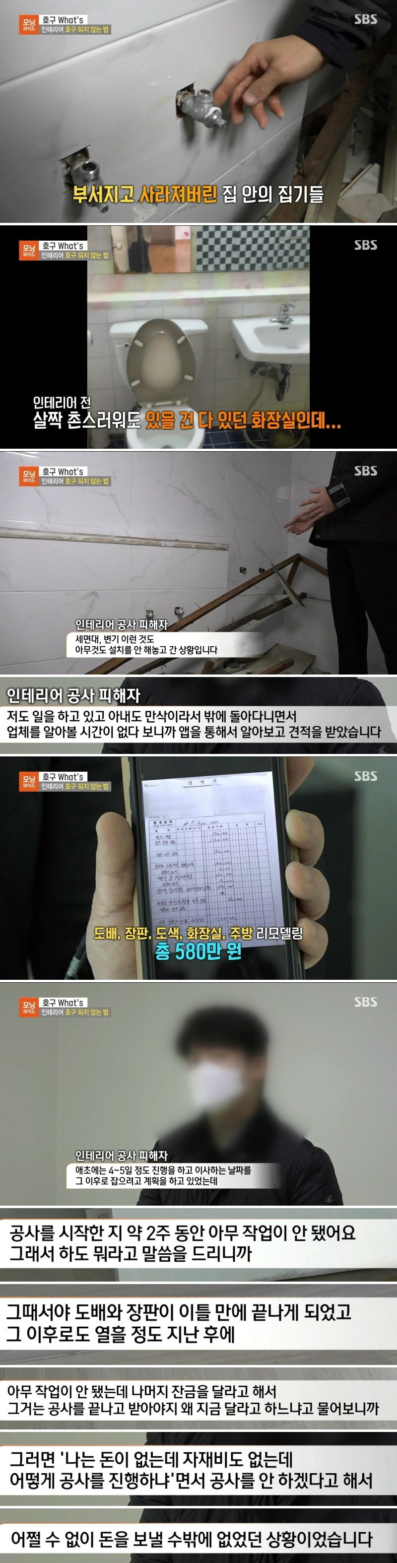 SBS 방송 프로그램 모닝와이드에서는 인테리어 공사 피해자에 관한 내용을 다뤘다.