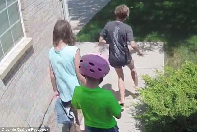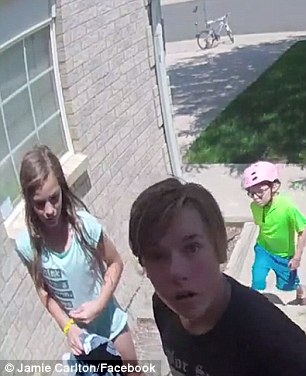 13살 헤일리(Haylie Wenke)와 그녀의 6살 남동생 리건(Reagan) 그리고 친구 애슐리(Ashley Dayton)는 한 집 앞에서 초인종을 누르고 말하는 모습이 영상에 잡혔다.