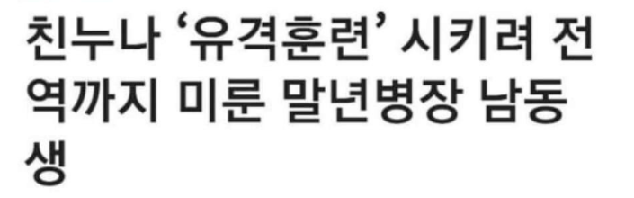 친누나가부사관으로 입교해 자신의 부대로 훈련온다는 소식 듣고 유격훈련 시키려고 전역일 연기한 남동생 전역 직전에 부사관으로 입교해 자신의 부대로 온 친누나 유격훈련 시키려고 전역일 연기한 남동생 ADVERTISEMENT ADVERTISEMENT ADVERTISEMENT