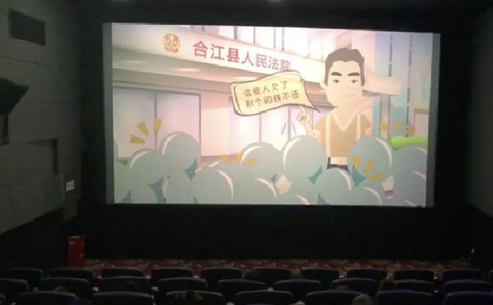 중국 쓰촨 성 허장 현에 위치한 한 극장에서는 영화 시작 전, 애니메이션 캐릭터가 등장한다.