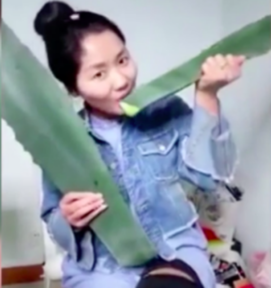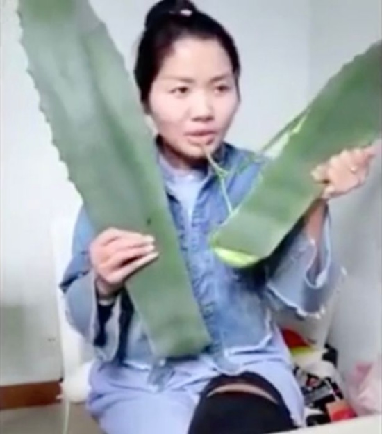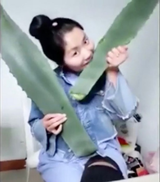 사진에서처럼 장은 알로에를 통째로 손에 든 채로 먹고 있었다.