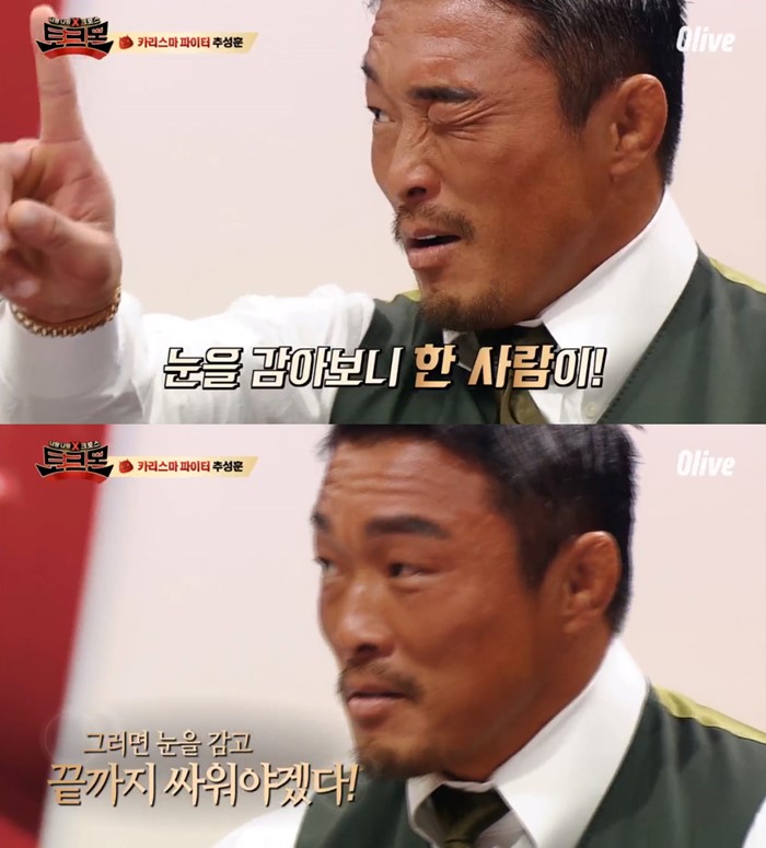 추성훈은 “한 쪽 눈을 감으니 그때서야 제대로 보이더라”며 “경기 내내 한 쪽 눈을 감은 채 임했다. 결국 이기긴 이겼다”라고 말했다.