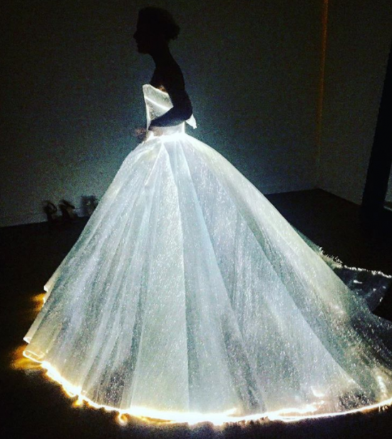 어떻게 보면 다소 평범해 보일 수 있는 이 순백의 디즈니풍 드레스의 반전은 조명이 어두워졌을 때 시작된다.